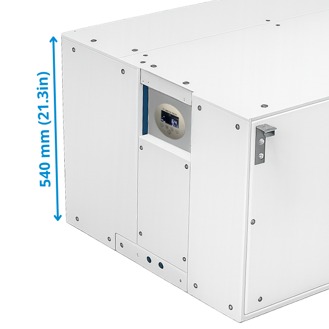 DRY HORIZON is made with complete flexibility in mind. In a standard issued unit you have 3 various air outlet connections. You can connect from the side, from the bottom and to the top. Thus no matter the position or placement of the unit, you still will be able to easily connect any air ducting.